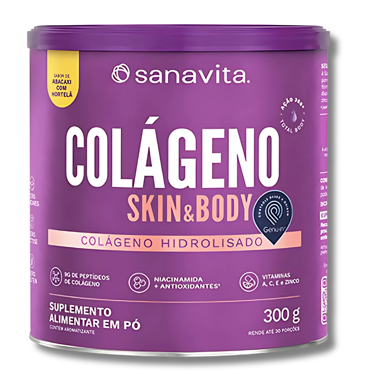 Colágeno Hidrolisado em Pó Skin da Sanavita tem formulação que é pioneira no mercado de alta absorção e procedência. Além disso, inclui um complexo de vitaminas e minerais (vitamina A, C, E e zinco) com ação antioxidante e precursora de colágeno.