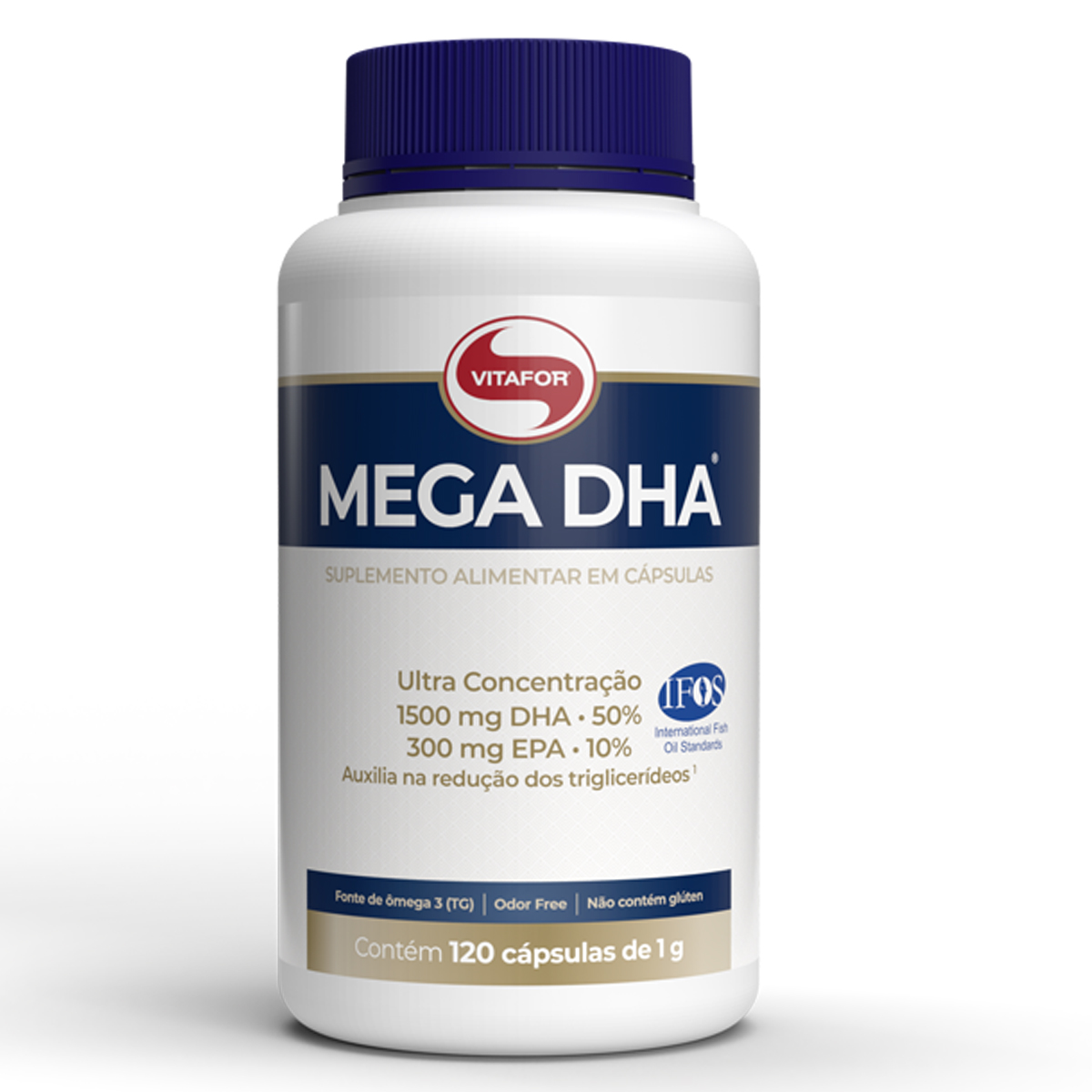 - Possui concentração 300 mg de ácido eicosapentaenoico (EPA) e 1500 mg de ácido docosahexaenoico (DHA) por dose
